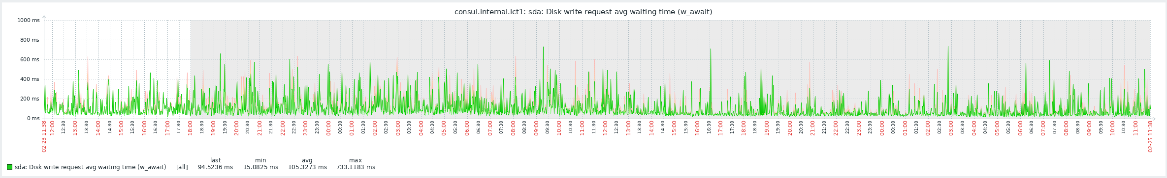 sda: ios=0/133627, merge=0/48, ticks=0/2892469, in_queue=2904210, util=99.18%